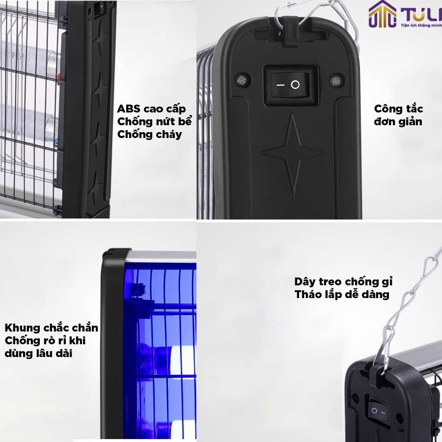 - Đèn bắt muỗi TULI được thiết kế với chất liệu và khung chắc chắn