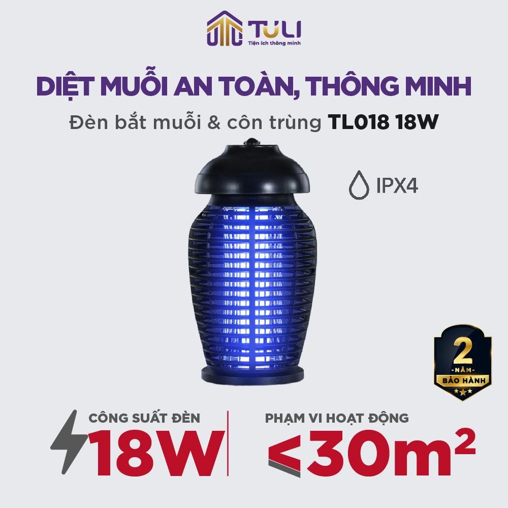 ĐÈN BẮT MUỖI TULI TL018 - GIẢI PHÁP DIỆT MUỖI AN TOÀN, HIỆU QUẢ, CÓ THỂ SỬ DỤNG NGOÀI TRỜI - PHÙ HỢP CHO SÂN VƯỜN, QUÁN CAFE, QUÁN ĂN NGOÀI TRỜI