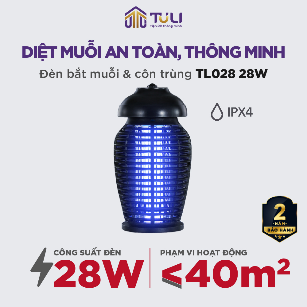 ĐÈN BẮT MUỖI TULI TL028 - GIẢI PHÁP DIỆT MUỖI AN TOÀN, HIỆU QUẢ, CÓ THỂ SỬ DỤNG NGOÀI TRỜI - PHÙ HỢP CHO SÂN VƯỜN, QUÁN CAFE, QUÁN ĂN NGOÀI TRỜI