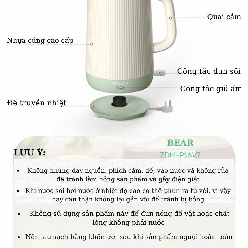 Ấm siêu tốc Bear P16V7 là thiết bị không thể thiếu trong mỗi gia đình. P16V7 có công suất lớn giúp bạn đun sôi nước nhanh chóng giúp bạn có thể pha sữa, pha mỳ, cafe nhanh chóng. An toàn khi sử dụng.