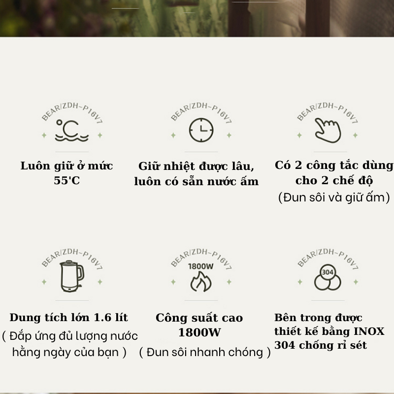 | Chức năng | Đun nước siêu tốc |