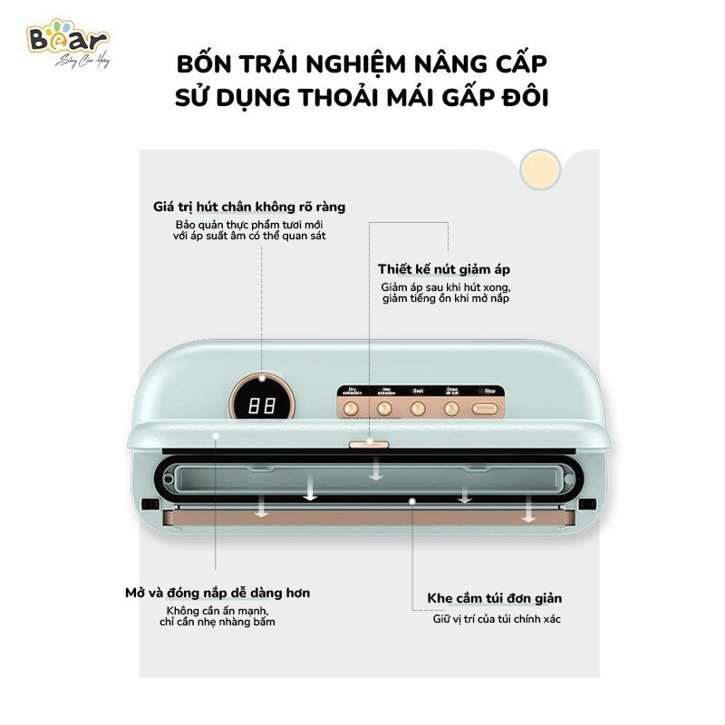 • Khả năng hút chân không mạnh mẽ áp suất 60KPA