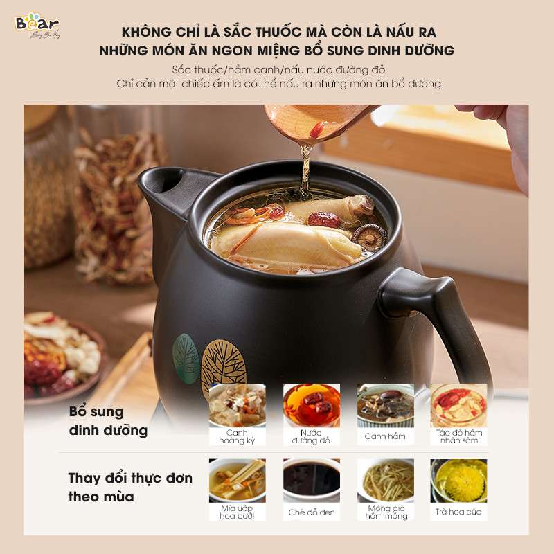 Chỉ với 1 chiếc ấm sắc thuốc Bear, bạn vừa có thể sắc thuốc, pha trà lại vừa nấu súp, chè…