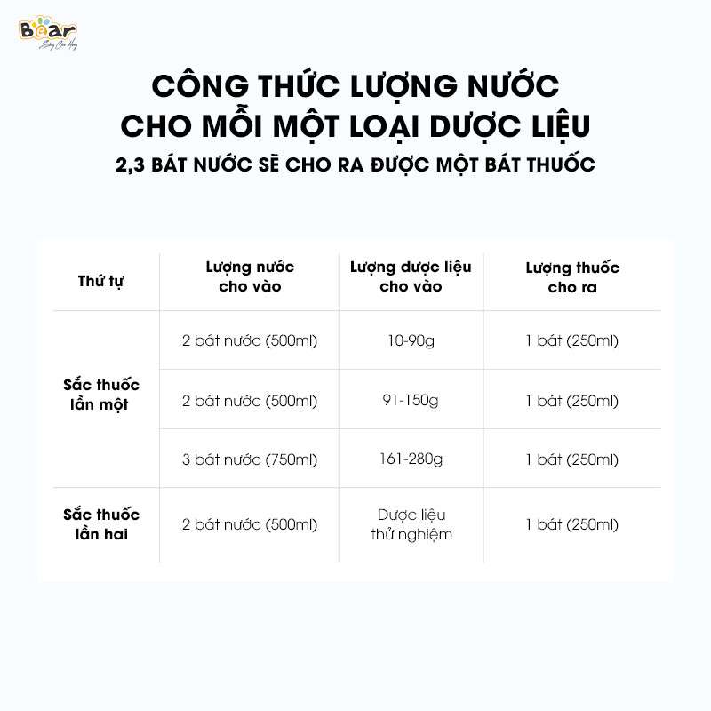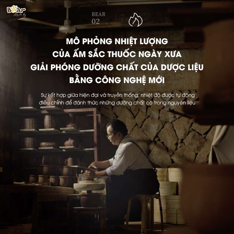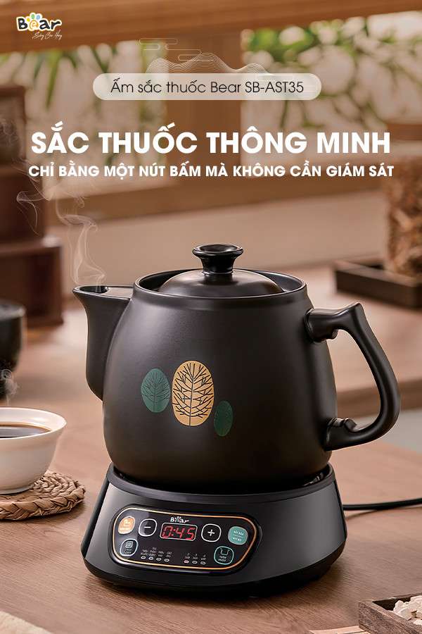 – Sắc thuốc Bắc, thuốc Nam : Ấm sắc thuốc Bear SB-AST35 là sự kết hợp giữa truyền thống và hiện đại, mô phỏng nhiệt lượng của ấm sắc ngày xưa và giải phóng dưỡng chất của dược liệu bằng công nghệ mới. Bạn có thể dễ dàng điều chỉnh nhiệt độ để phù hợp với nhu cầu của mình. Lửa lớn làm cho thuốc giải phóng nhanh các dưỡng chất. Lửa nhỏ lại giúp hầm sắc lâu để phát huy hết công hiệu của dược liệu.