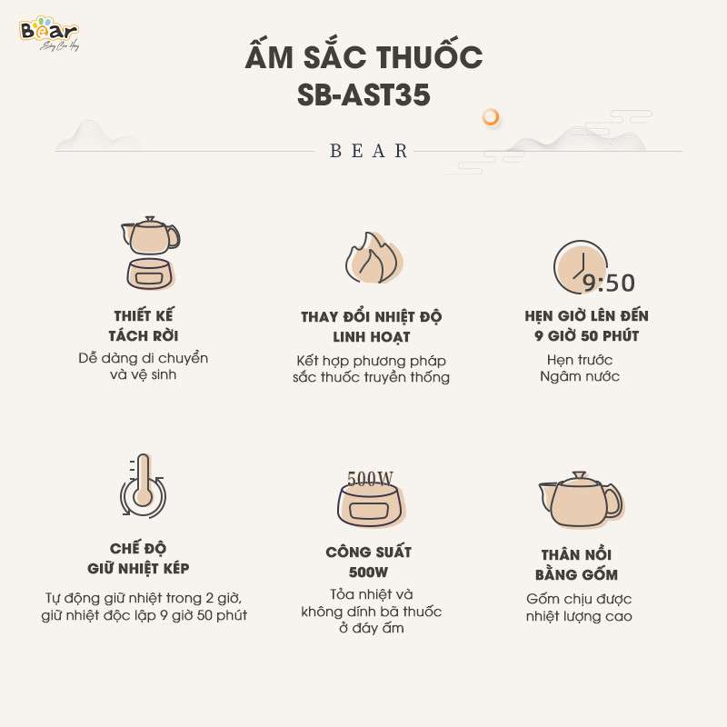 Các chức năng chính của ấm sắc thuốc Bear SB-AST35 (JYH-B40Q1)