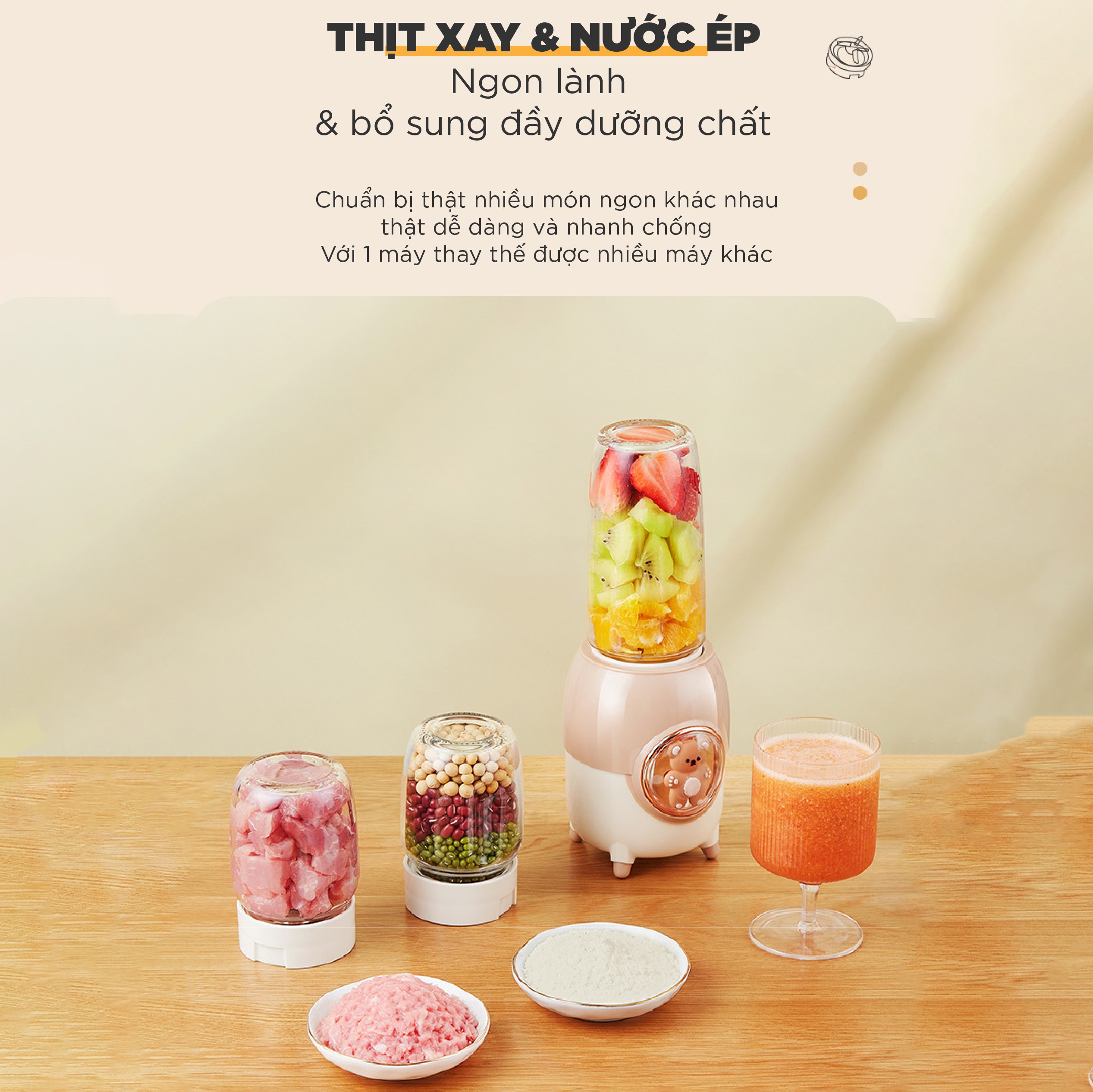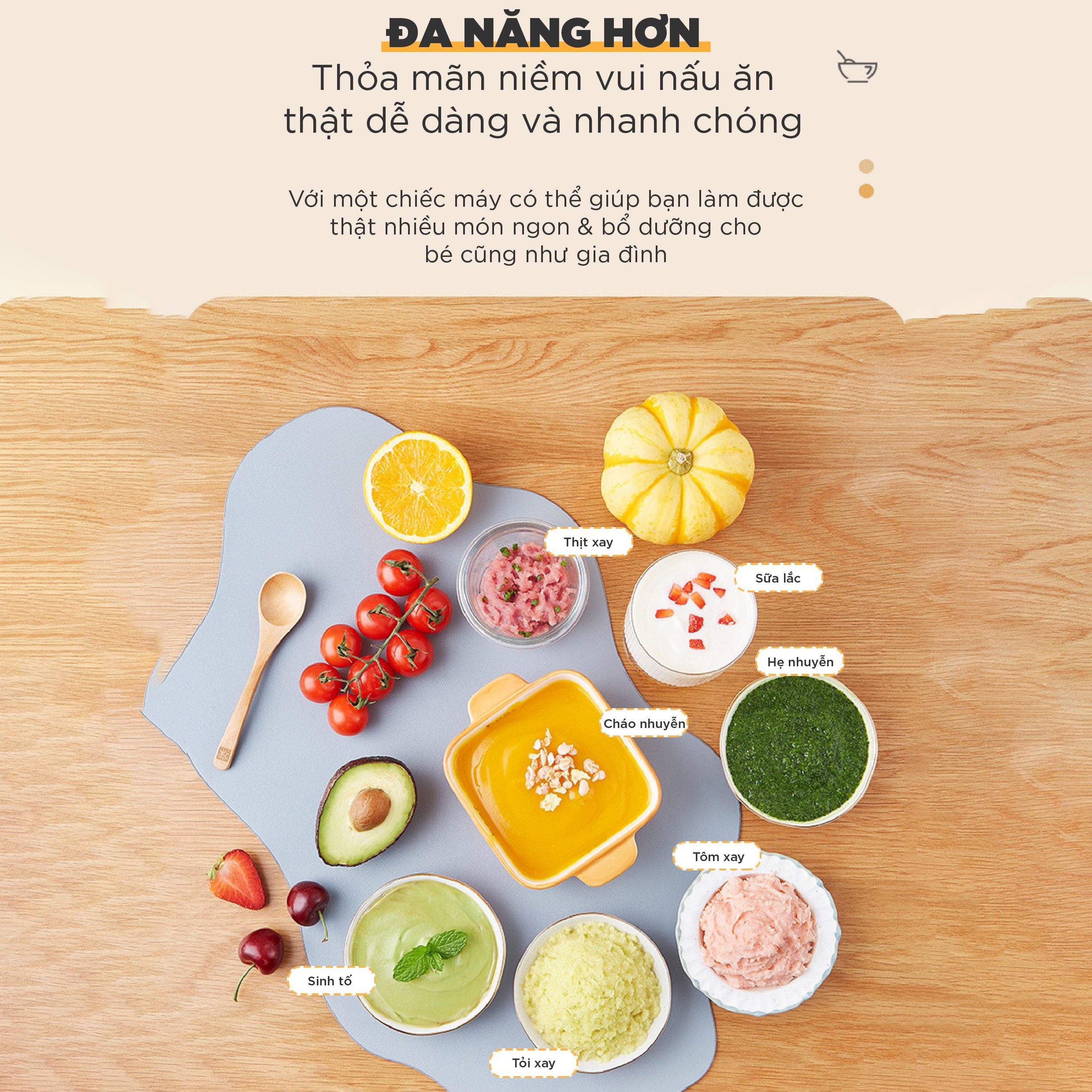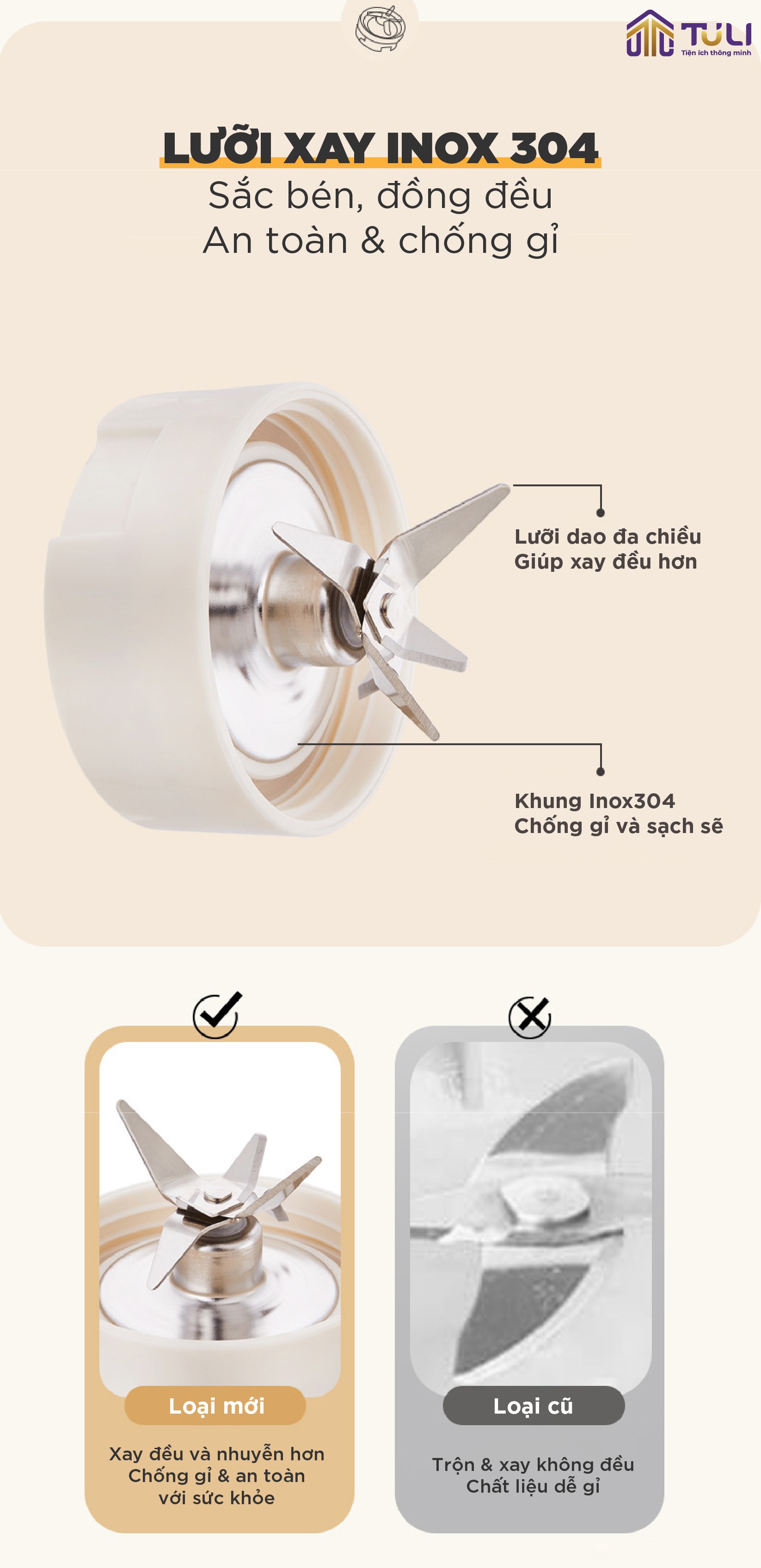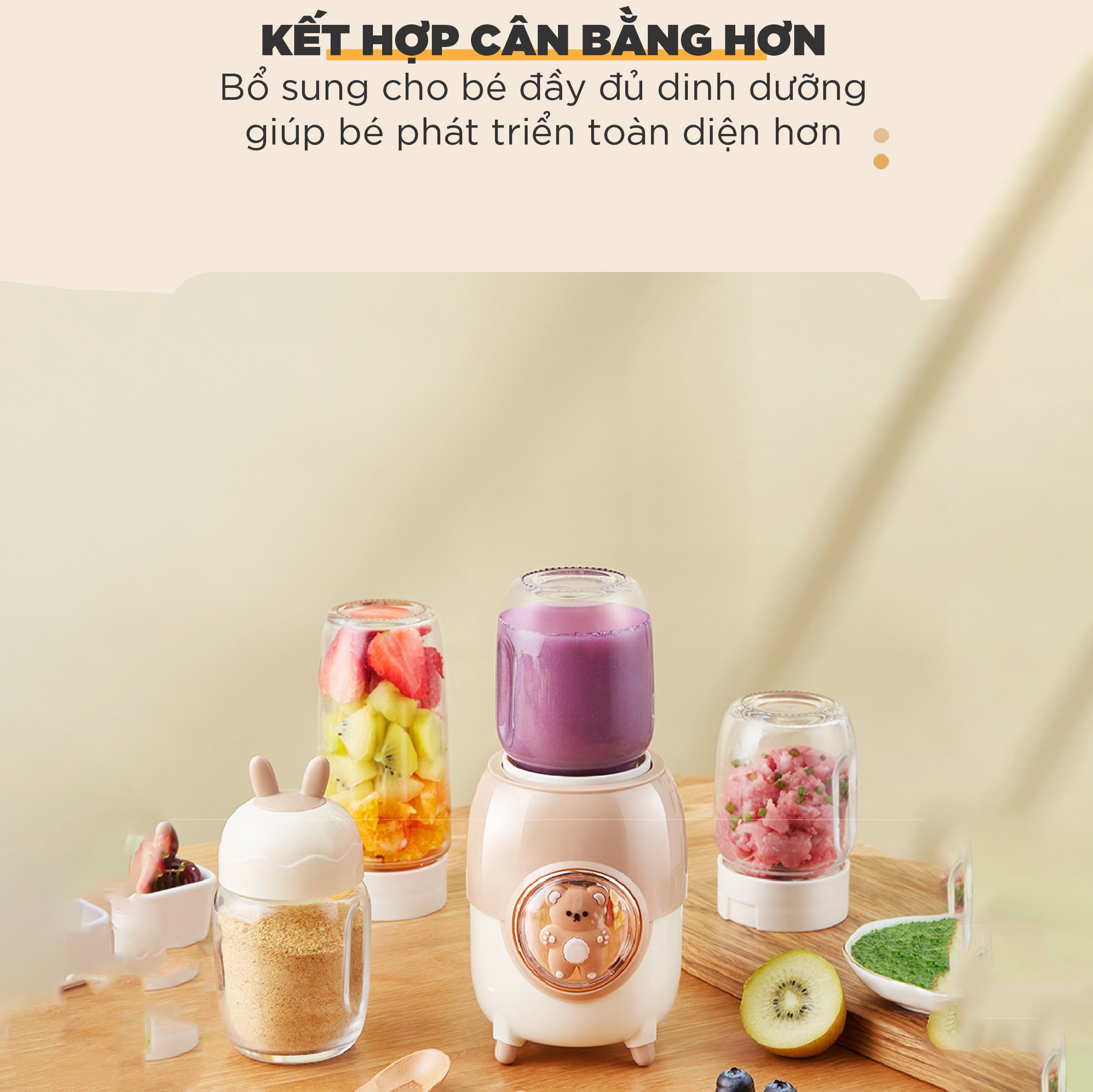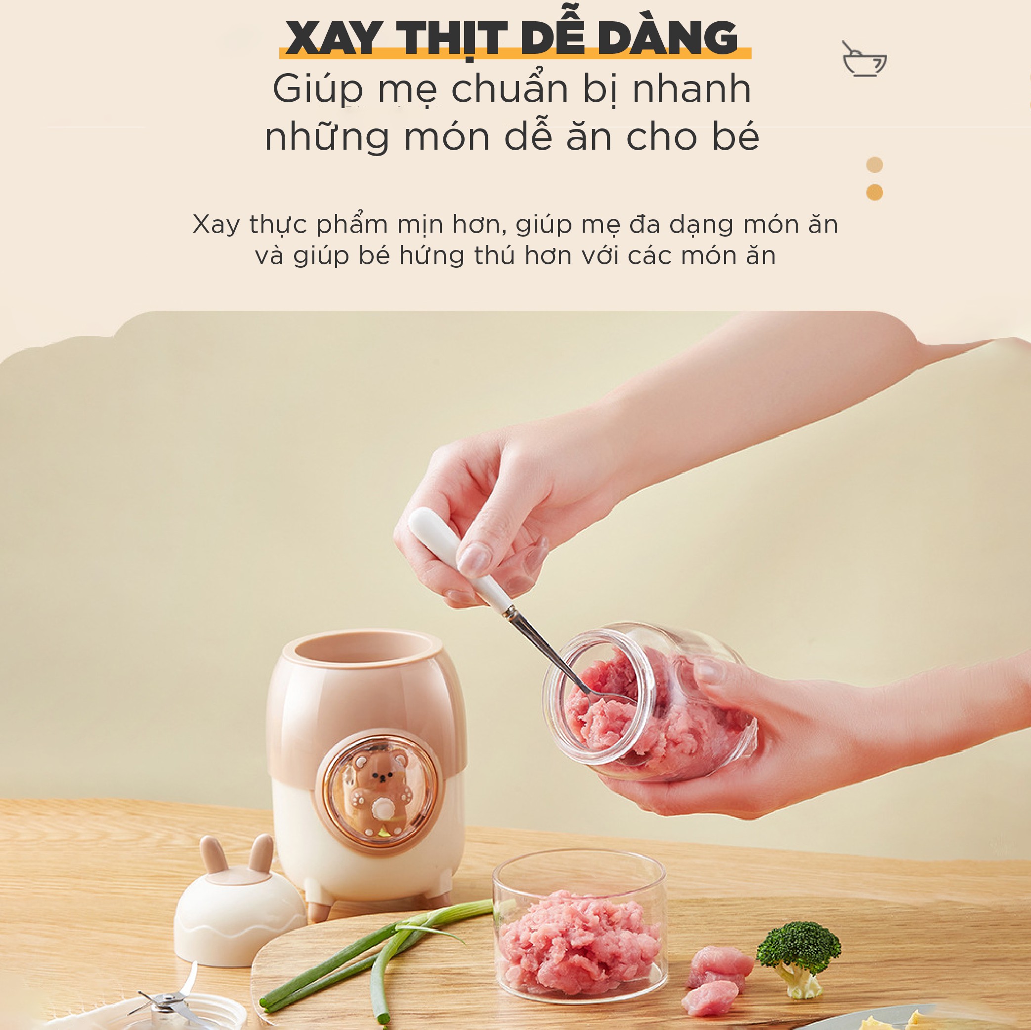 Sở hữu thiết kế thông minh với 3 loại cối và lưỡi xay khác nhau, kết hợp với công suất 200W, máy xay ăn dặm 3 cối TULI TL-C04K1 là giải pháp tuyệt vời giúp các mẹ chế biến đa dạng các món ăn dặm thơm ngon, dinh dưỡng cho bé yêu.