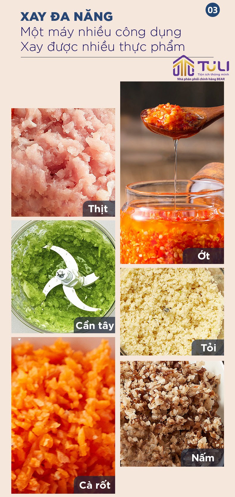 • Xay thịt, cá và rau củ, đáp ứng nhiều cầu