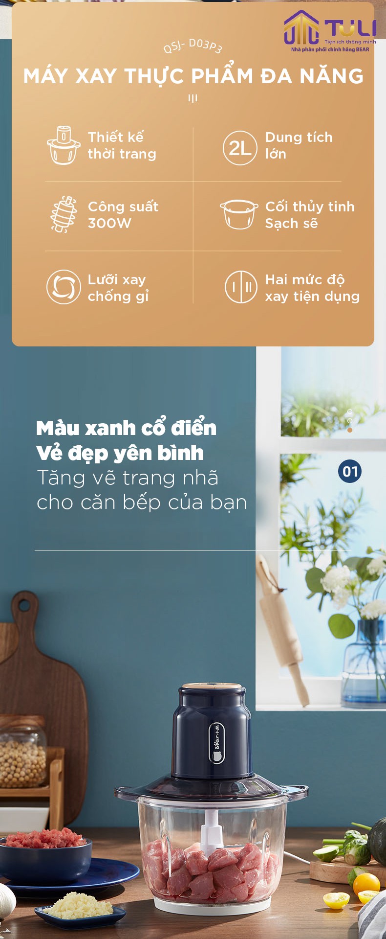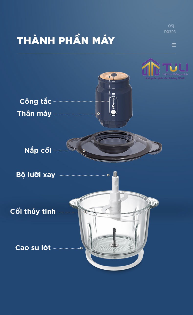 • Cối thủy tinh cao cấp, an toàn khi sử dụng