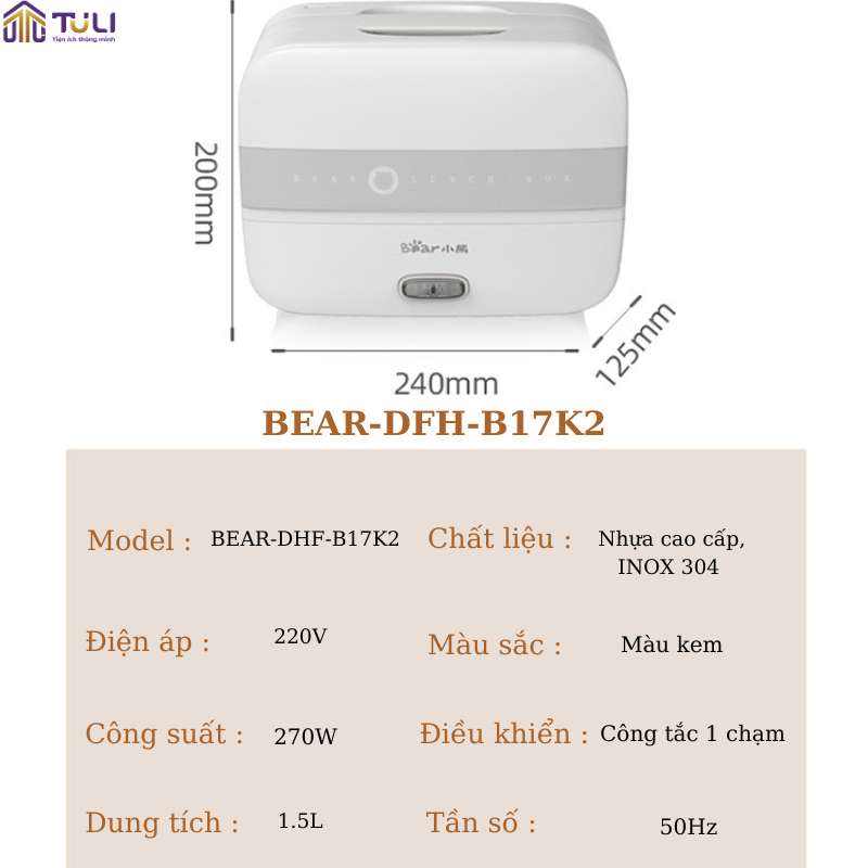 Thông số kỹ thuật của Hộp cơm điện Bear DFH-C15H1