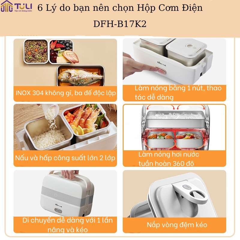 Hộp cơm điện cầm tay đa năng Bear DFH-B17K2 là một trong những dòng sản phẩm được ưa chuộng hiện nay. Chúng đem lại sự tiện lợi cho người dùng hàng ngày đặc biệt với những nhân viên công sở phải đưa cơm đi làm. Nhờ có nồi cơm này mà thức ăn luôn được hâm nóng bất cứ lúc nào.